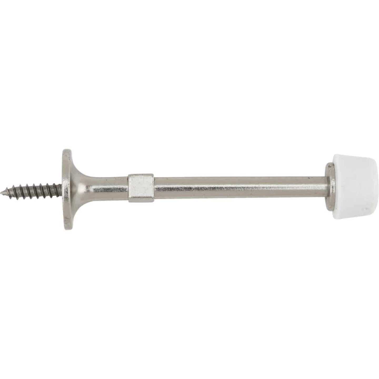 National catalog model No. 1405 rigid door stop. Helps prevent damage to the wall. 3 In. projection from the wall. Hole in the end of the plastic tip to help reduce choking hazard. Easy to install. Zinc material.