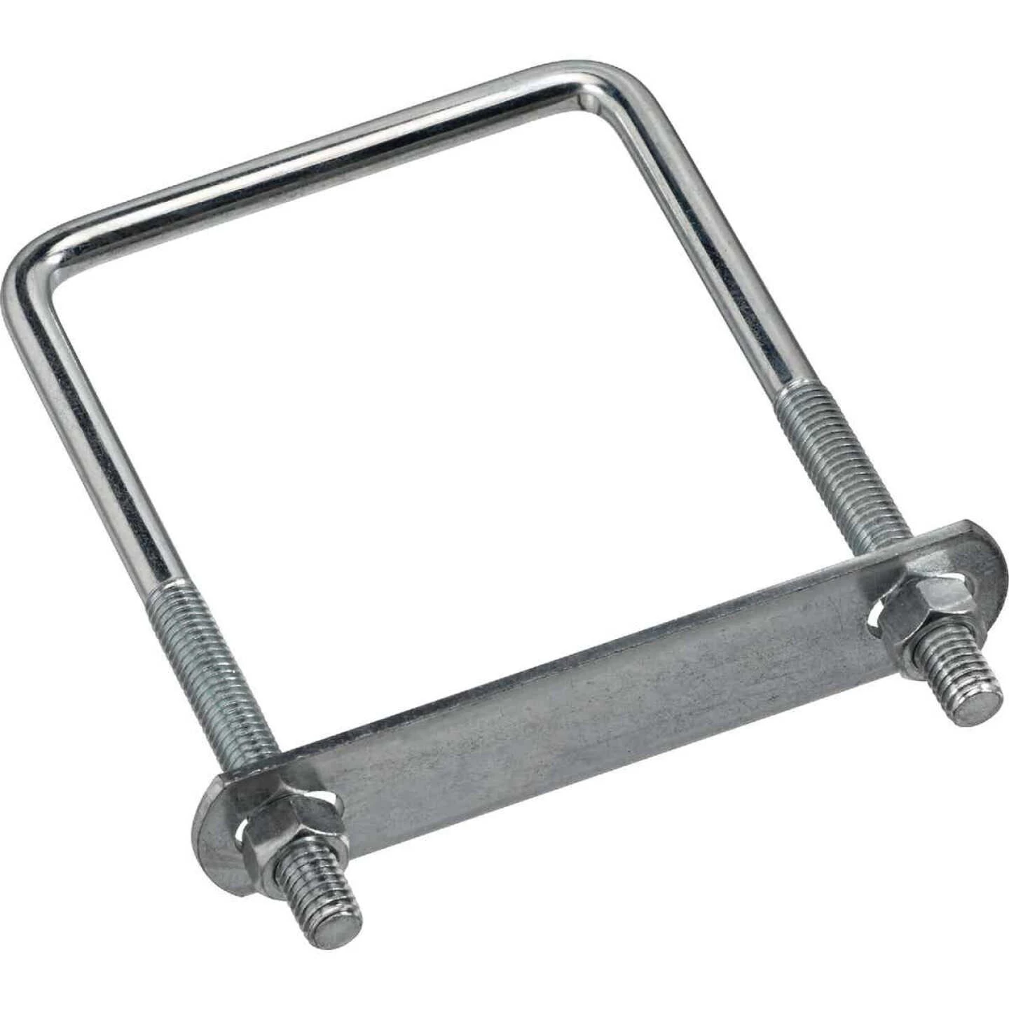 National catalog model No. 2192BC square U bolts, zinc plated. Designed for securing various products to rectangular wood and metal objects. Box pack with 2 hex nuts, assembled. Plate and hex nuts are included. Manufactured from steel wire with zinc finish.