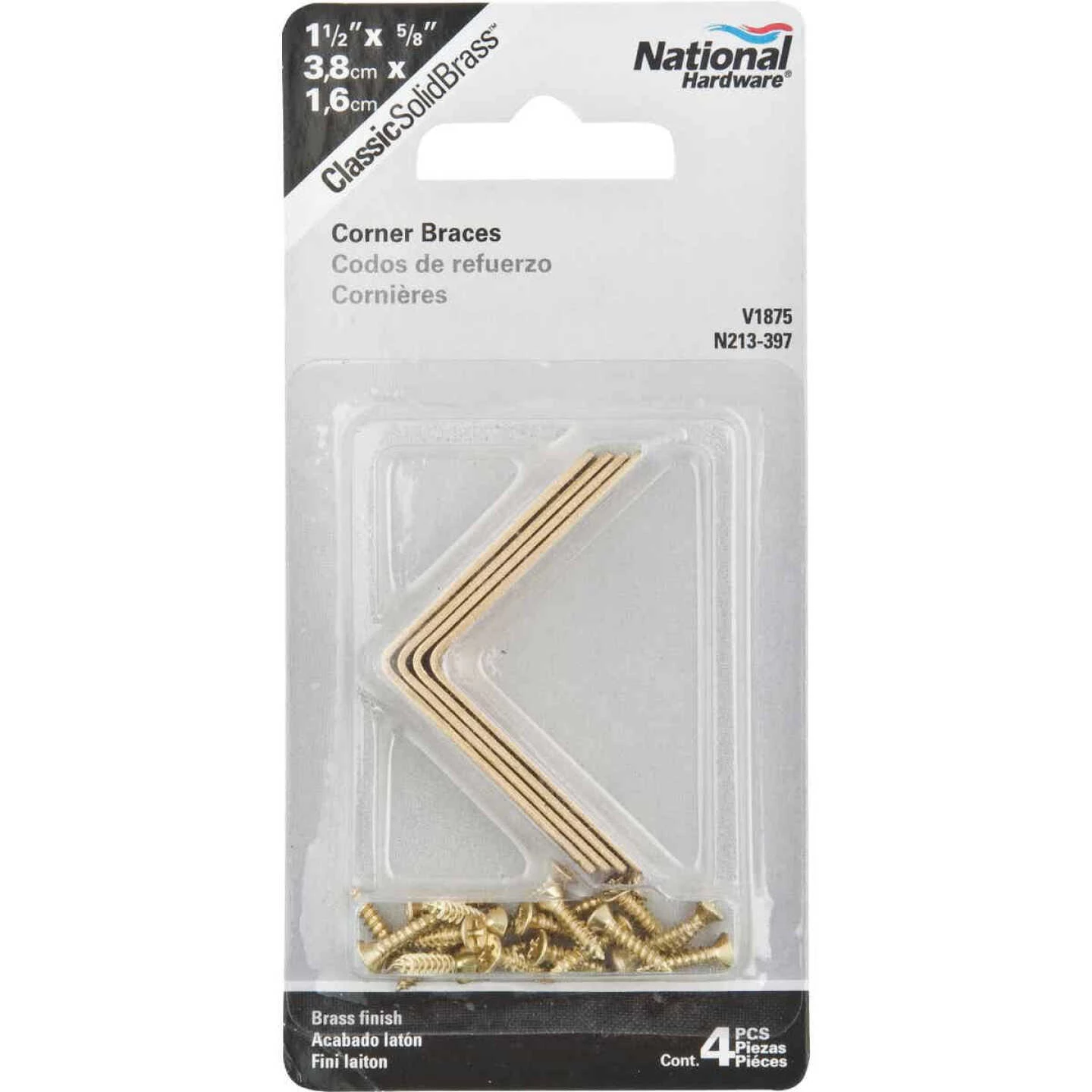 V1875 solid brass corner brace. These corner braces will provide a decorative touch to the repaired object. Solid brass screws included. 4 per pack.