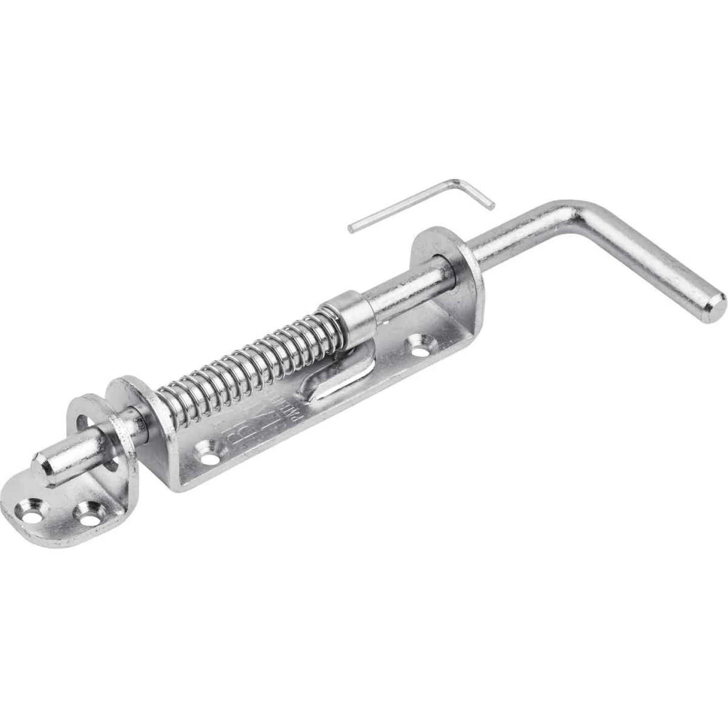 Sliding bolt is designed for various applications including gate doors, shed doors, and stalls. Spring action bolt automatically retracts to clear entry. Left or right handed. Instructions and fasteners included.