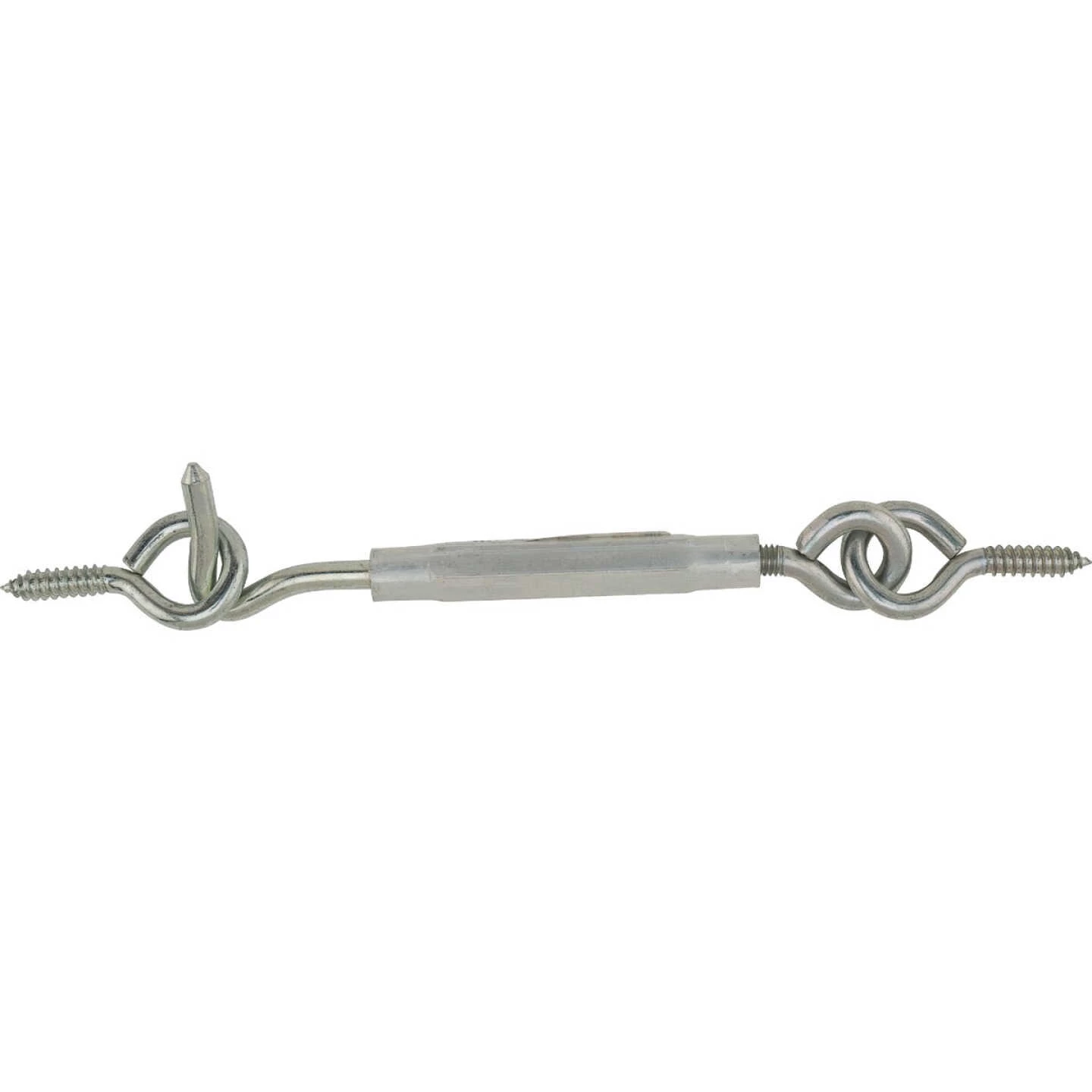 Bulk box pack with 2 screw eyes. Hex shaped extruded aluminum body with zinc finish. Steel hooks and eyebolts. Size: 3/8″ x 11″.