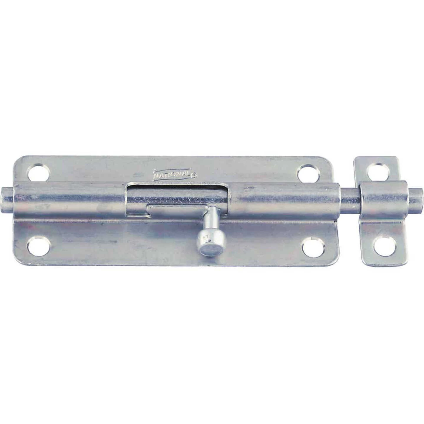 National catalog model No. V834. This bolt is designed for security applications on lightweight doors, chests, cabinets, etc. Can be used on right or left hand applications for installation flexibility. In vertical use, the notch-in case holds the bolt in a locked position. Bolt diameter .32. Made of steel with brass bolt and knob.