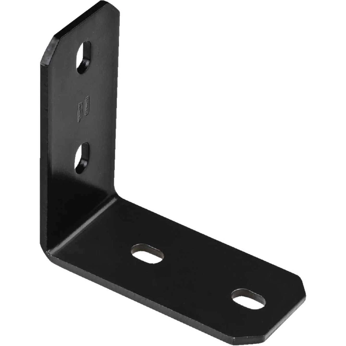 National Catalog 1157BC heavy duty structural corner brace. Used for reinforcing 90 Deg. angles by applying to the inside or outside of the corner. Slots for 1/2 In. carriage bolt. Larger bolt holes provide options for structural support, chamfered corners provide decorative look. Black powder coat finish for improved weather resistance. Warning: The safe working load for this product depends upon the application and fasteners used. In order to reduce the risk of personal injury or property damage, consult with design professionals to determine if this product is appropriate for your application.