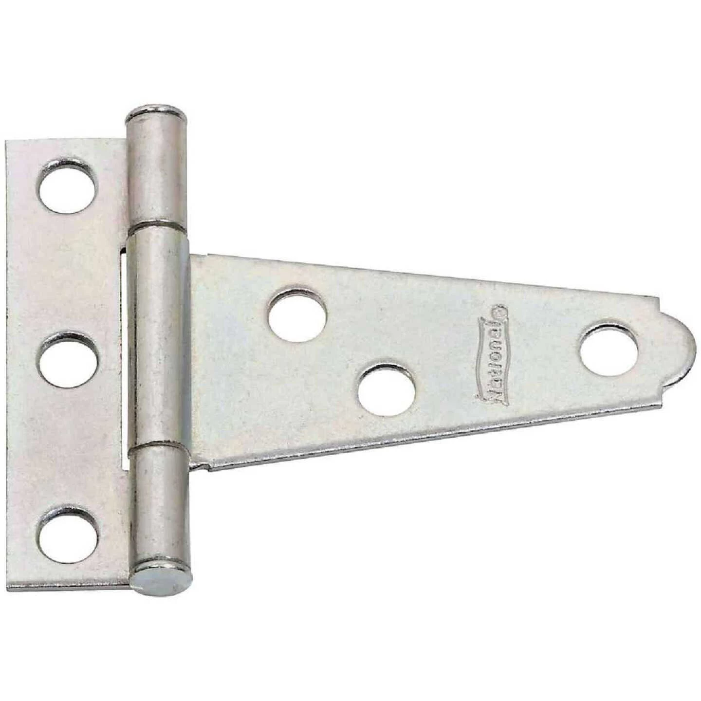 Light T-hinges have a tight pin for right or left hand applications. Features offset holes for extra strength. Hot roll steel – zinc plated. Use on narrow frame or posts, chests, door, lids, and more. Prevents wood splitting. 18 Lb. SWL (safe working load).