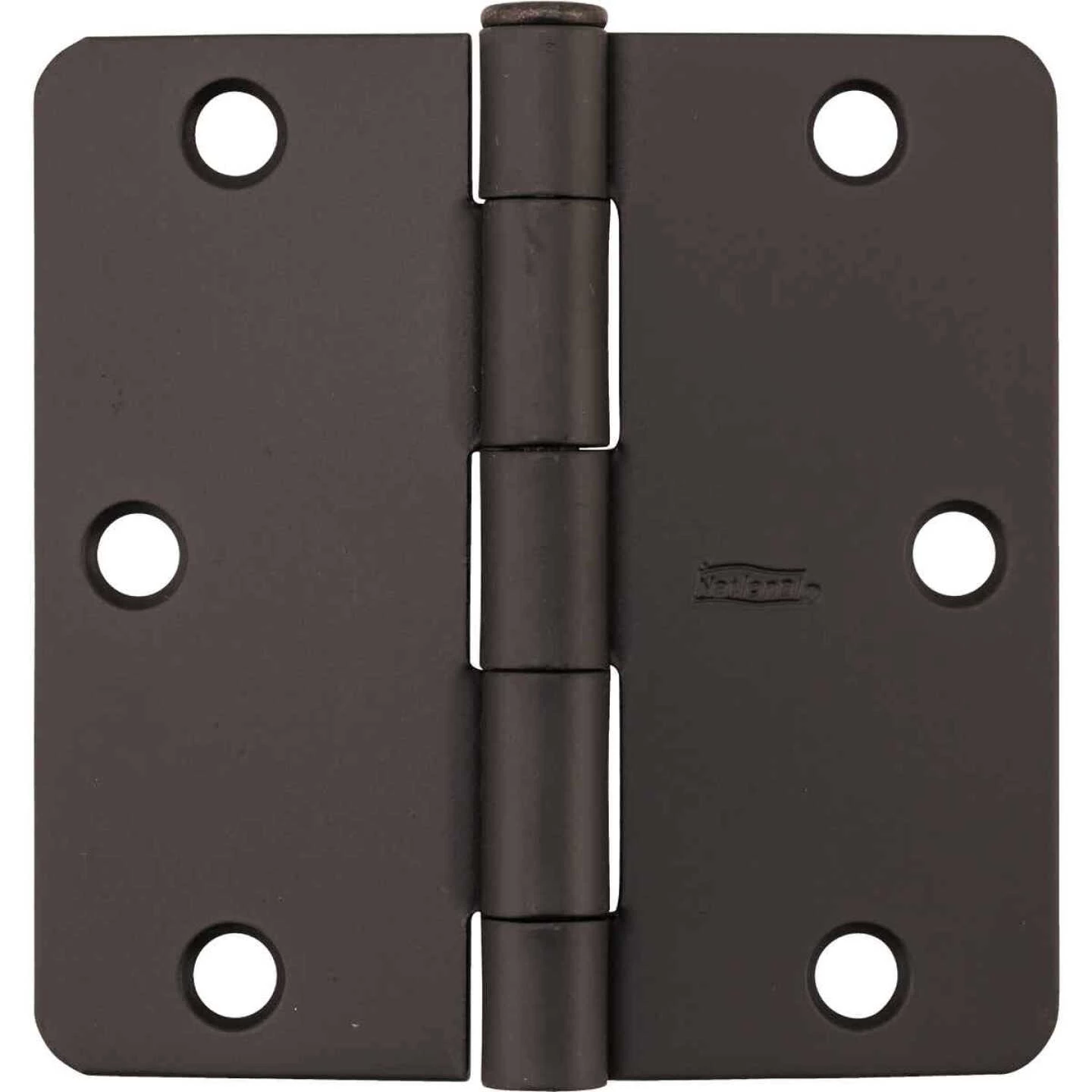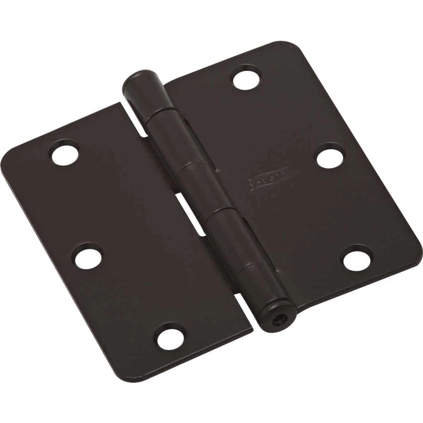 Round corner residential door hinge (National Model 512RC) for use on interior residential doors. 1/4 In. round corner radius. Removable pin for quick and easy installation. Screws included. Steel material.