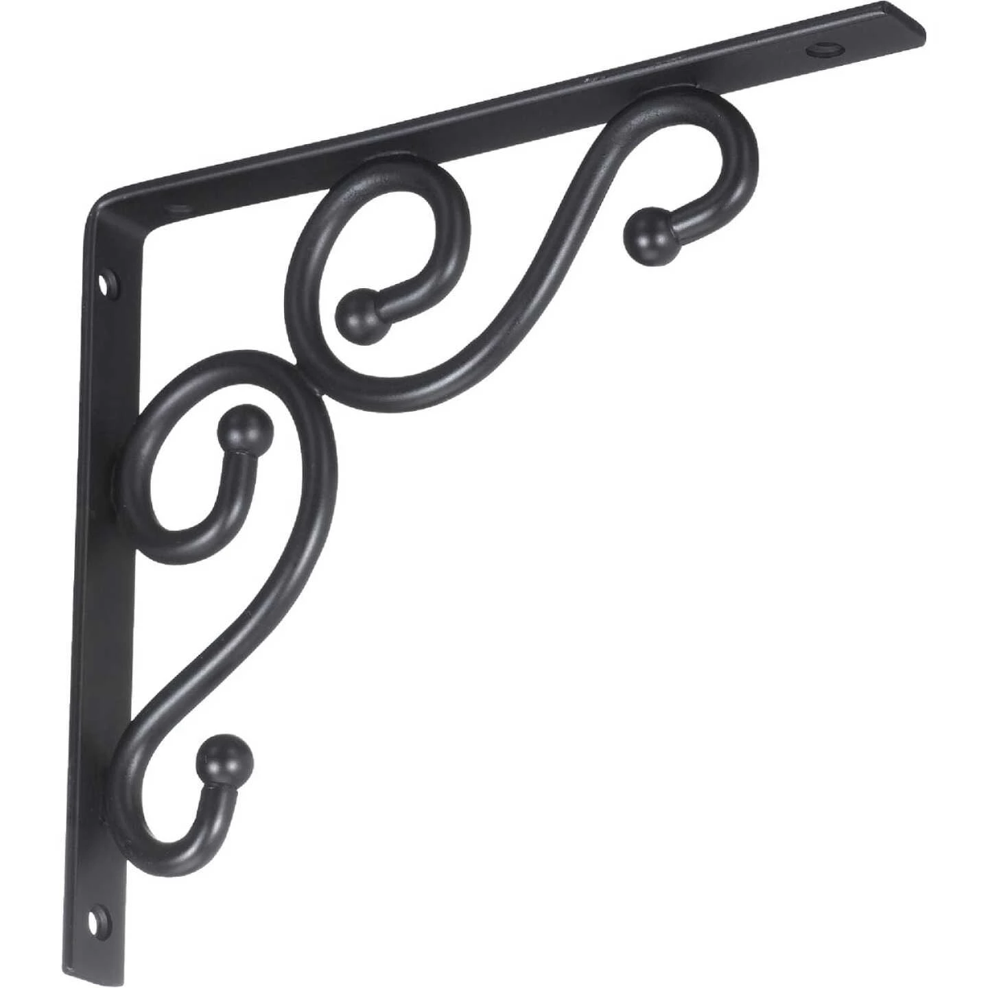 National Catalog Model 773BC. Steel construction shelf bracket is used to support shelves. Decorative design. Mounts to wall studs. Includes mounting screws.