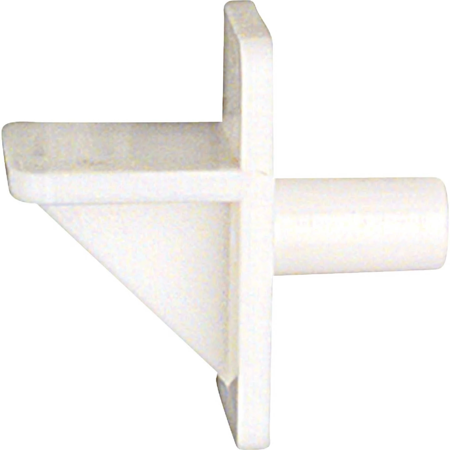 National catalog No. 159. Supports are designed for mounting shelves in bookcases, cabinets, china and linen closets, medicine chests, and more. Mounts in a 1/4 In. drilled hole. Made of plastic.