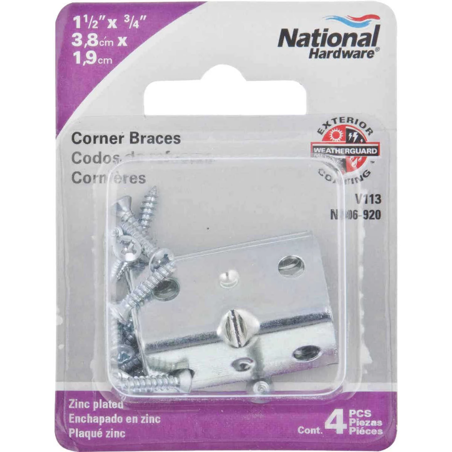 National catalog model No. V113 series. Corner braces are designed for furniture, countertops, shelving support, etc. Product design allows for quick and easy repair of general household items. Made of steel. 4 per pack. Carded.