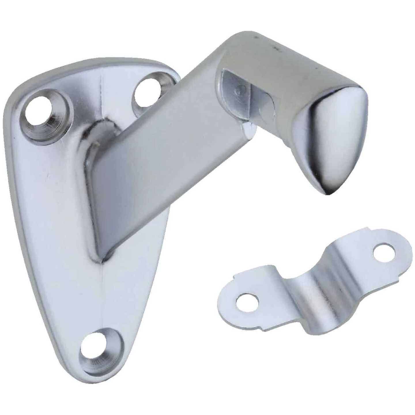 National catalog model No. V112 handrail bracket. Secures wooded handrail to wall, stud or other structurally sound surface. Bracket and strap are designed to adjust to any stairway angle. Maximum distance between brackets not to exceed 48 Inches. Zinc die-cast body and steel strap.