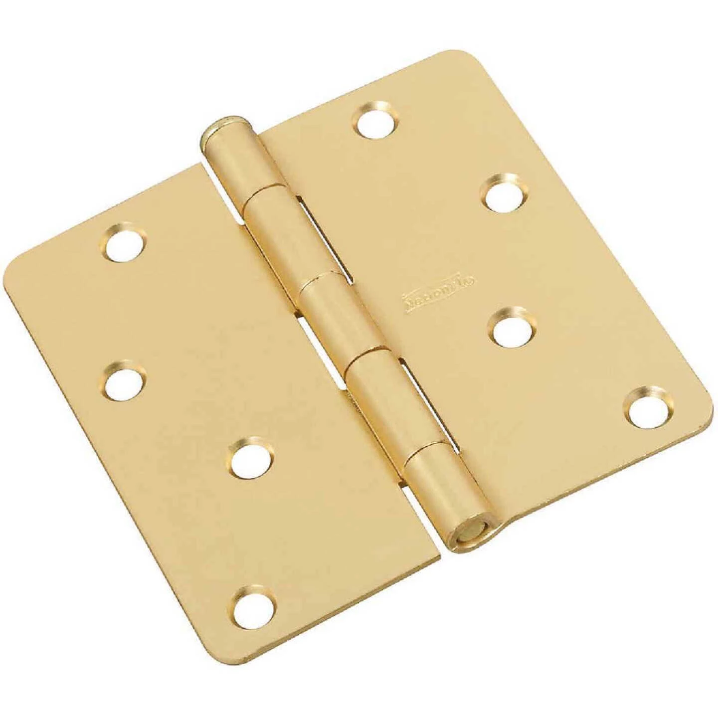 Round corner residential door hinge (National Model 512RC) for use on interior residential doors. 1/4 In. round corner radius. Removable pin for quick and easy installation. Screws included. Steel material.