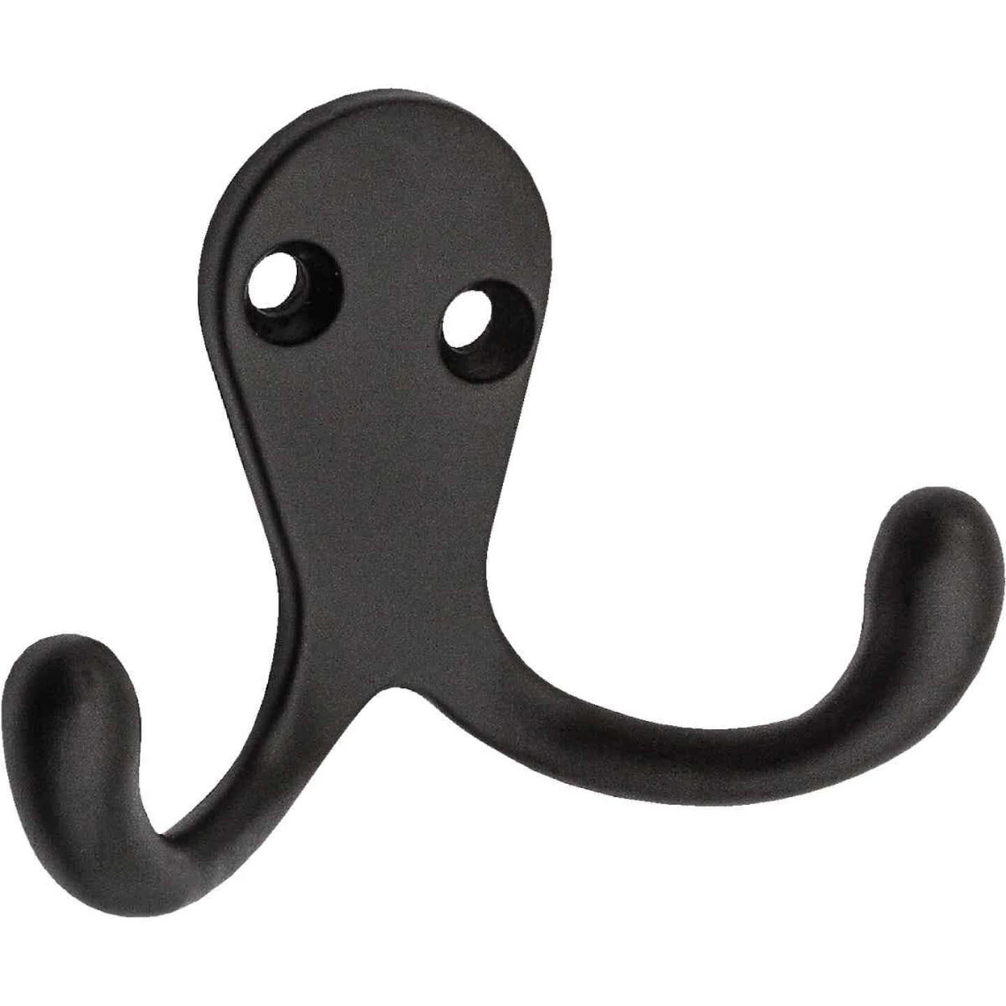 163 series. Double hook designed to mount on a door or wall to hold long and heavy garments. Decorative ball tip design. Zinc die-cast. Comes with 2 flat head wood screws (#6 x 3/4 In.) for installation.