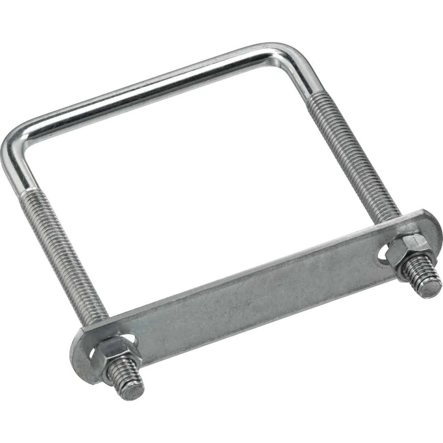 National catalog model No. 2192BC square U bolts, zinc plated. Designed for securing various products to rectangular wood and metal objects. Box pack with 2 hex nuts, assembled. Plate and hex nuts are included. Manufactured from steel wire with zinc finish.