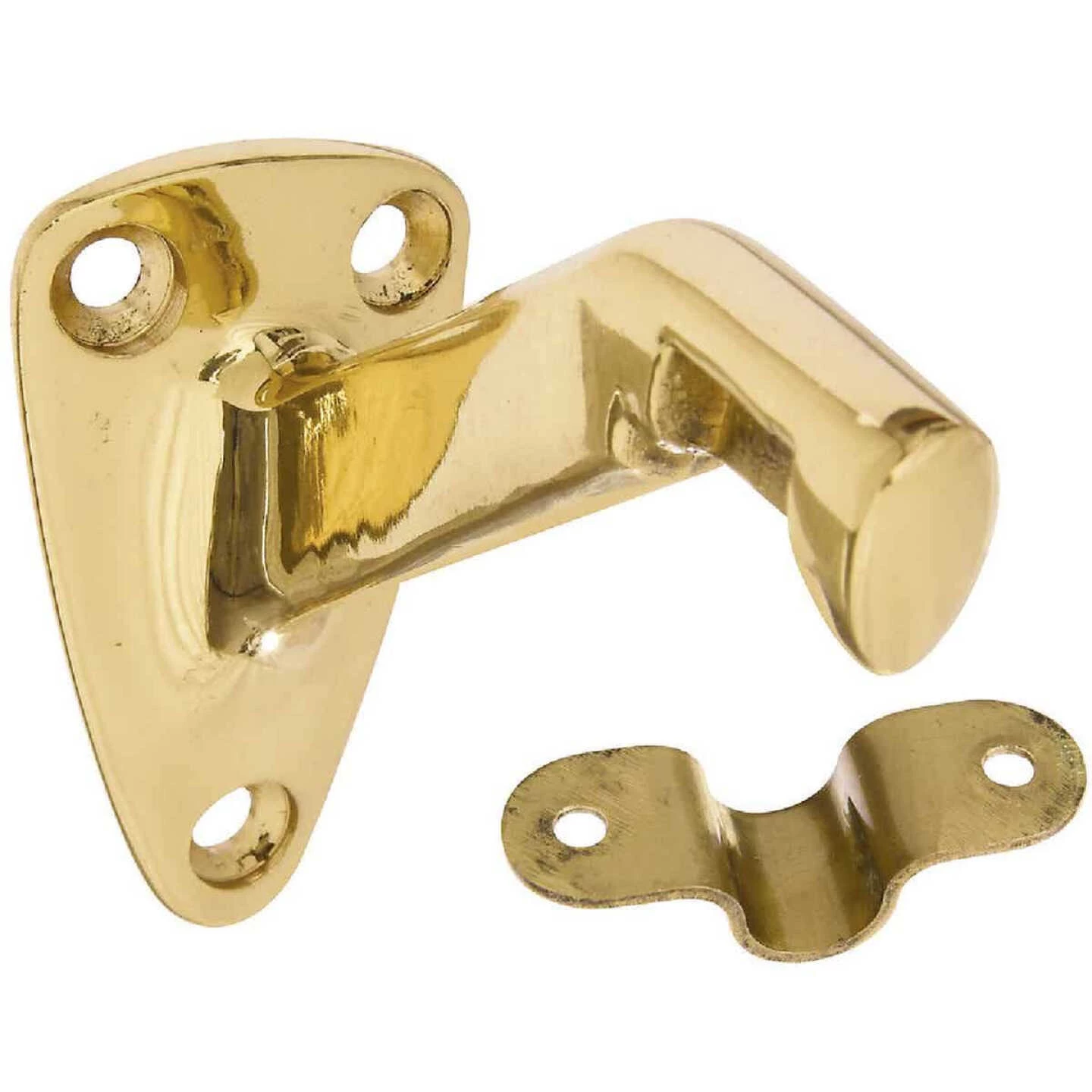 Gallery Series. Solid brass. Bright brass finish. Base: 2-7/16″ x 1-3/8″. Base to center rail: 3-1/4″. Safe working load: 200 lb. per bracket.