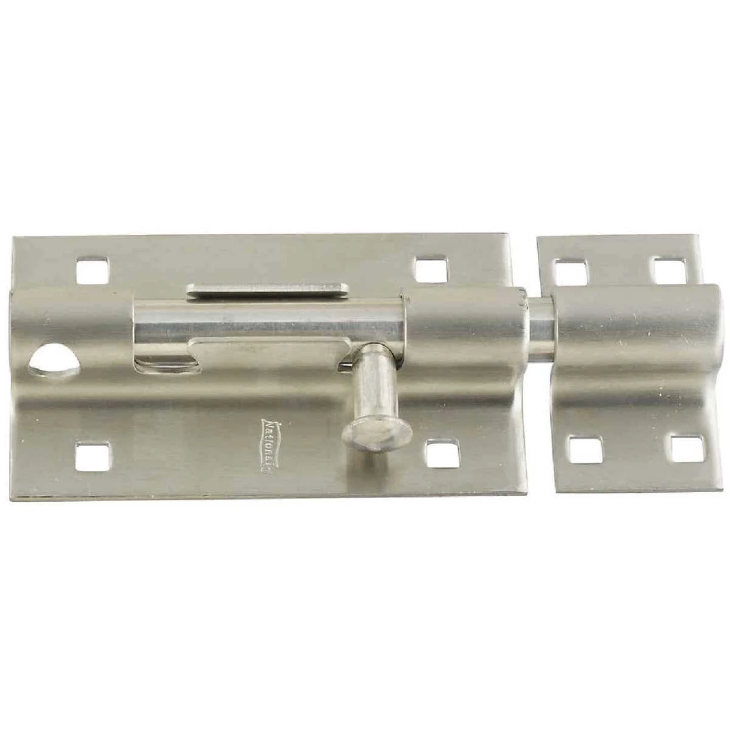 National catalog model No. V839. This extra heavy-duty barrel bolt is rust-resistant; ACQ safe – safe for use with premium woods like cedar and redwood. Can be mounted with carriage bolts for added security. Designed for heavy-duty applications. Made of stainless steel. 1 per pack. Carded. 5″.