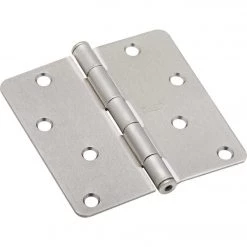 Round corner residential door hinge (National Model 512RC) for use on interior residential doors. 1/4 In. round corner radius. Removable pin for quick and easy installation. Screws included. Steel material.