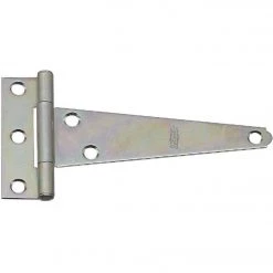 Light T-hinges have a tight pin for right or left hand applications. Features offset holes for extra strength. Hot roll steel – zinc plated. Use on narrow frame or posts, chests, door, lids, and more. Prevents wood splitting. 18 Lb. SWL (safe working load).