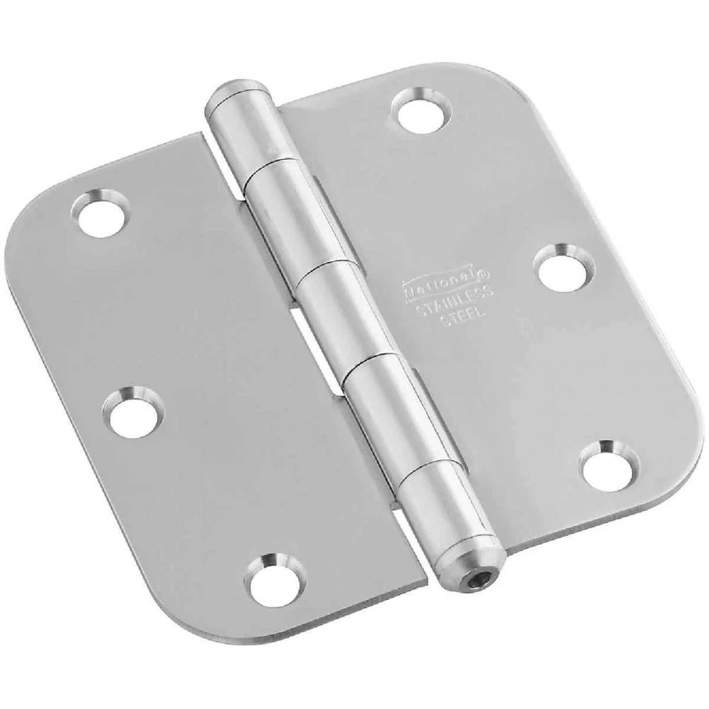 Radius, round corner hinge. Designed for industrial, commercial, and residential doors, especially in marina and other outdoor applications. Round corner, full mortise. Stainless steel for maximum corrosion-resistance. Nonrising pin. Removable pin for easier installation. Heavy-gauge material for added strength. Nib on hinge for finished appearance. 1 per pack.