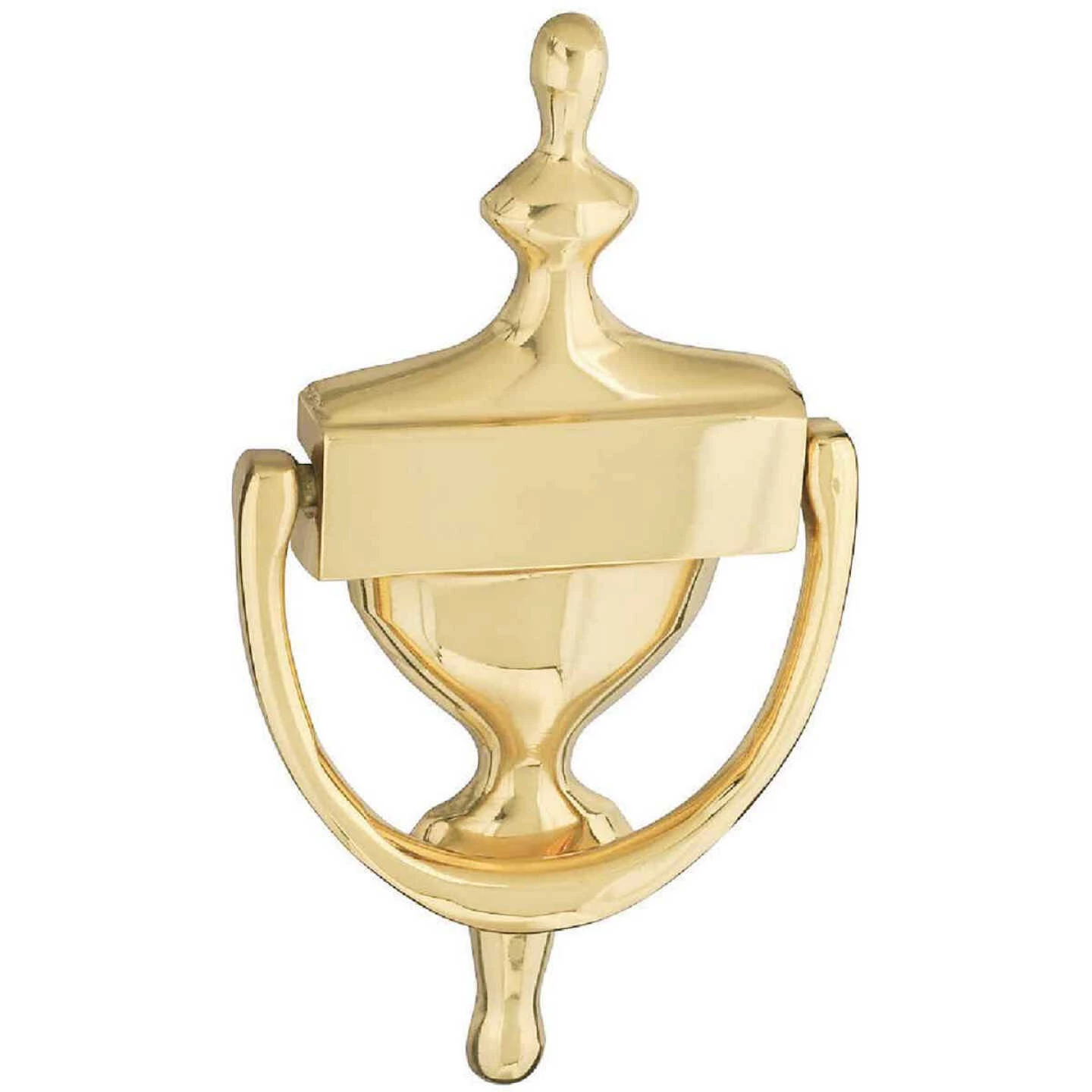 National catalog model No. V1914. This 7″ door knocker is designed to add a decorative appearance to doors up to 1-3/4″ thick. Can be personalized by engraving. Made of zinc die cast material. 13.44 Oz.