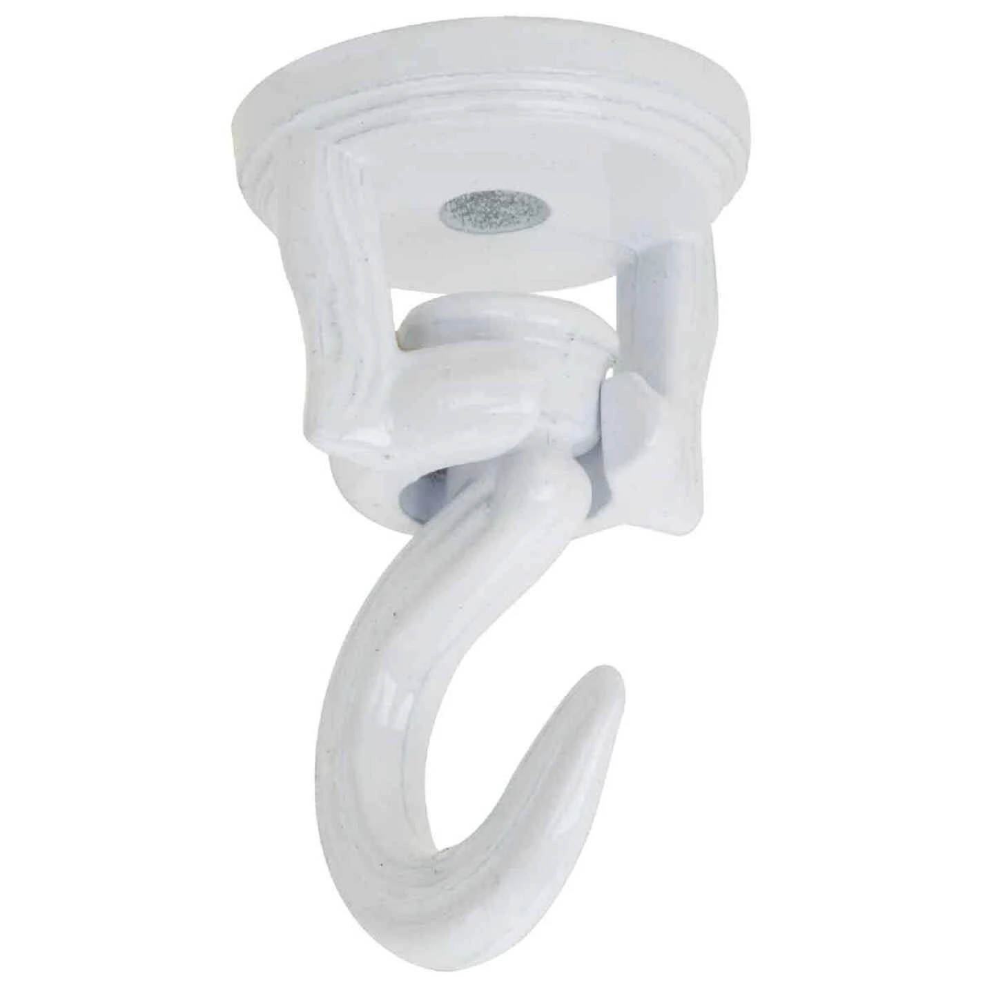 Durable die cast construction swivel swag hook. Ideal for planters and decorative items. Rotating hook permits even exposure to the sun. Includes 2 swivel hooks, 2 toggle bolts, and 2 screws per card.