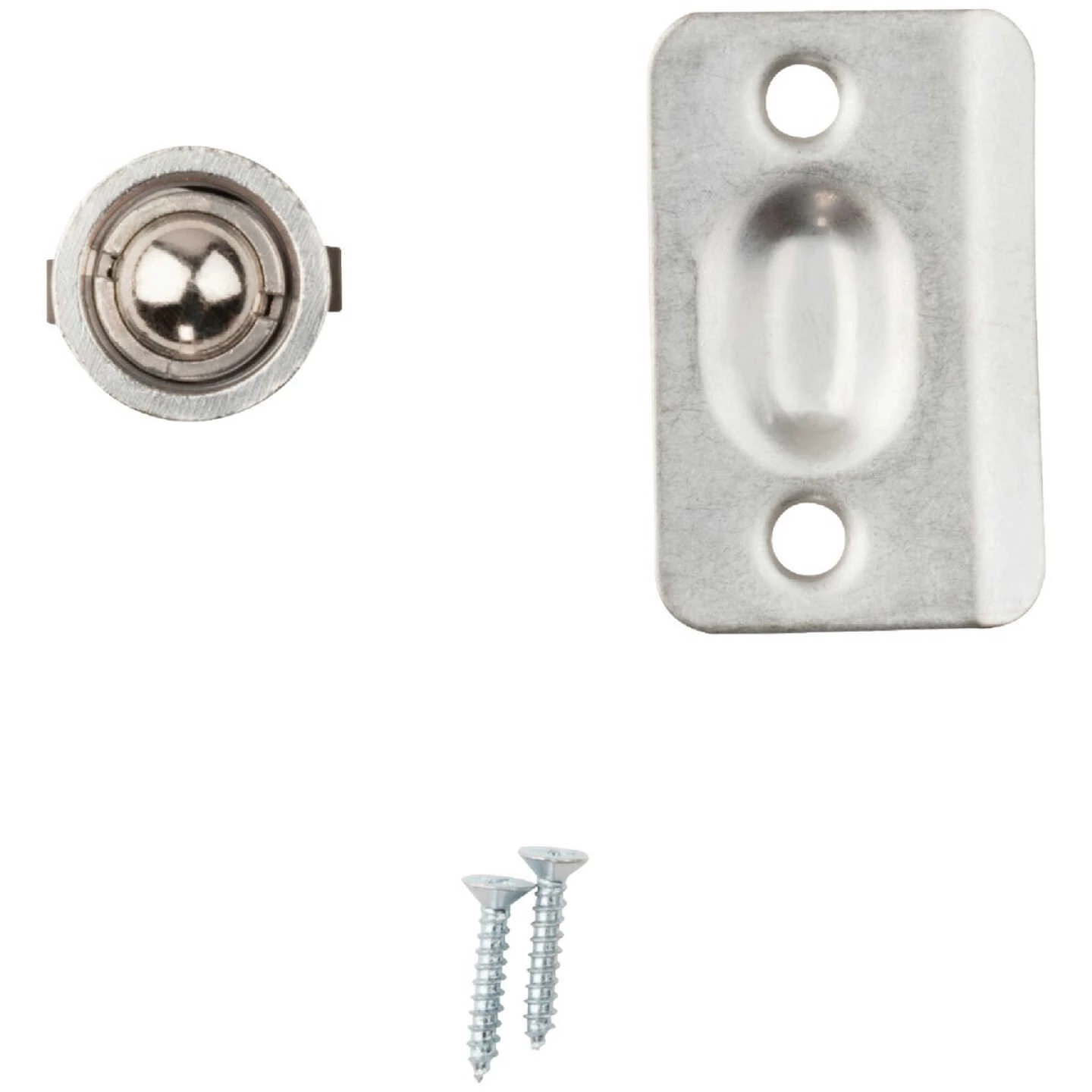 National catalog model No. 1440 drive-in ball catch. For use in wood, metal closet or cabinet doors. Adjustable tension. Includes fasteners for quick and easy installation. Steel material.