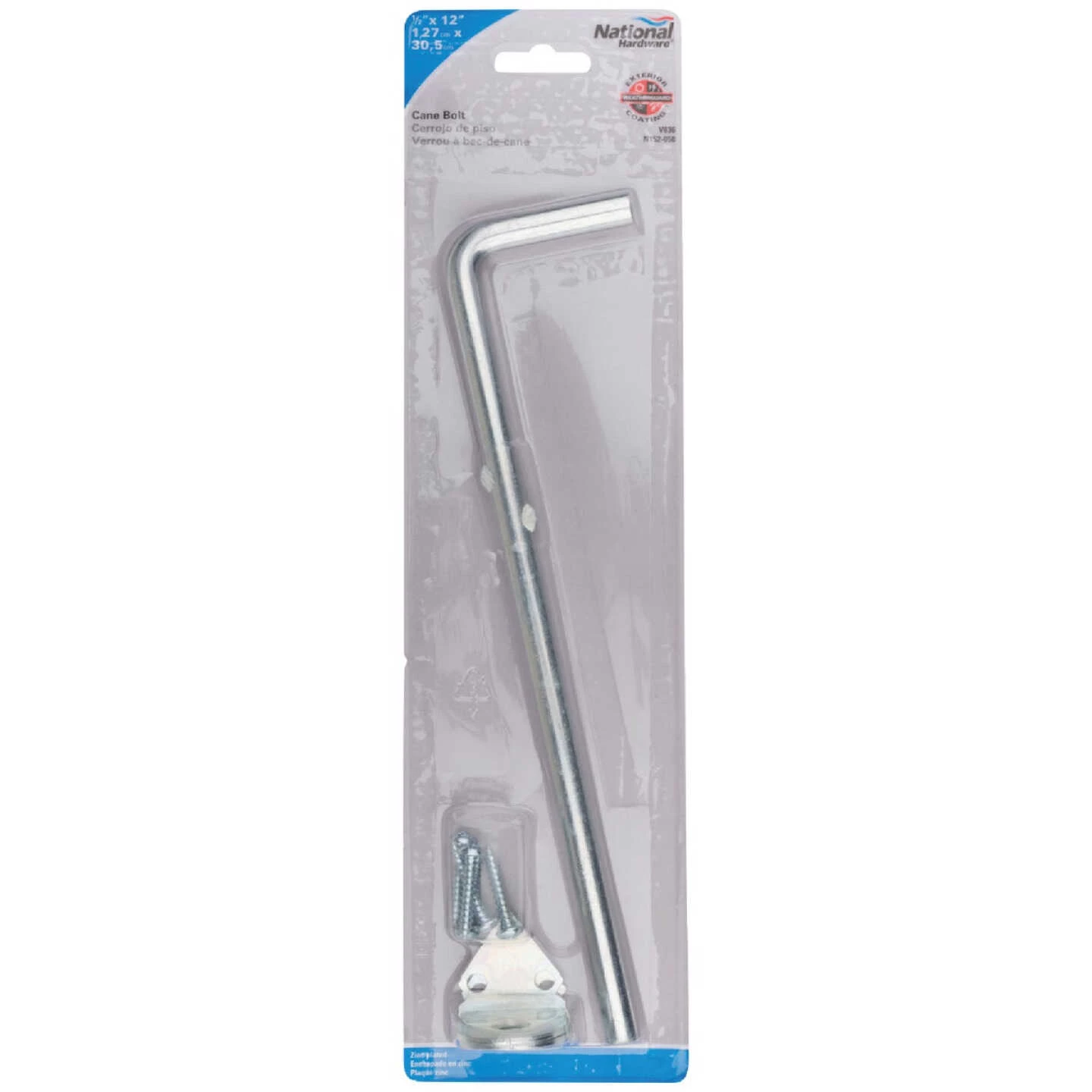 National catalog model V836. Pinch-outs on bolts allow cane to be stored in the open position or locked in the closed position. Nonadjustable throw. Ornamental mounting brackets. 1/2-inch x 12-inch.