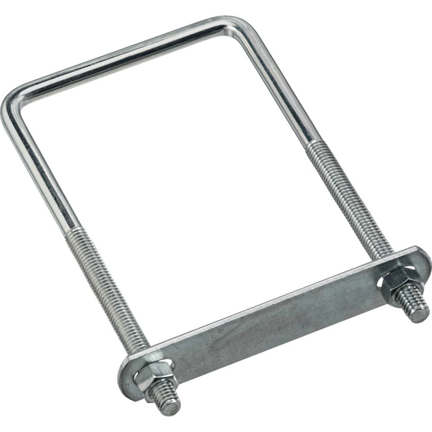 National catalog model No. 2192BC square U bolts, zinc plated. Designed for securing various products to rectangular wood and metal objects. Box pack with 2 hex nuts, assembled. Plate and hex nuts are included. Manufactured from steel wire with zinc finish.
