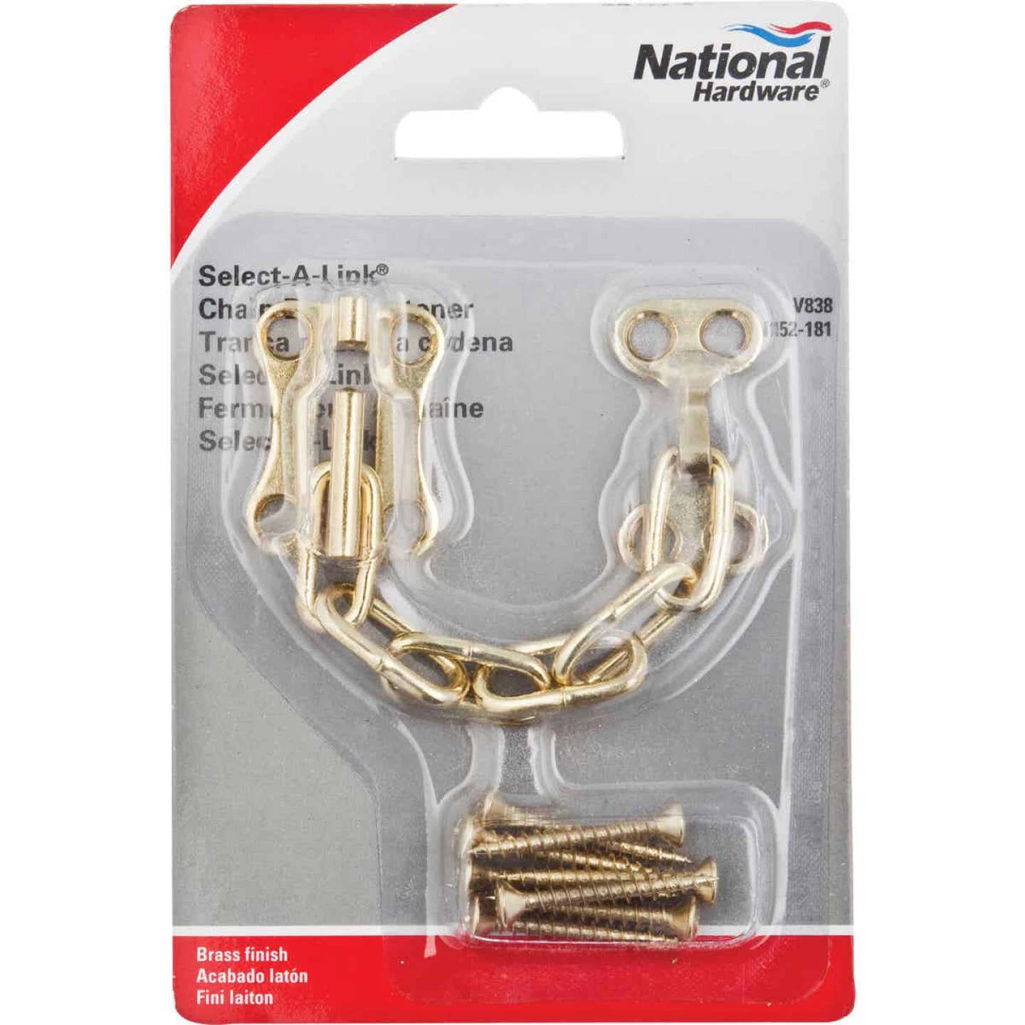 For wood and metal doors. Ideal for sliding patio doors. Case hardened, welded chain may be hooked into desired link to adjust door opening for viewing and ventilation. Tamperproof.
