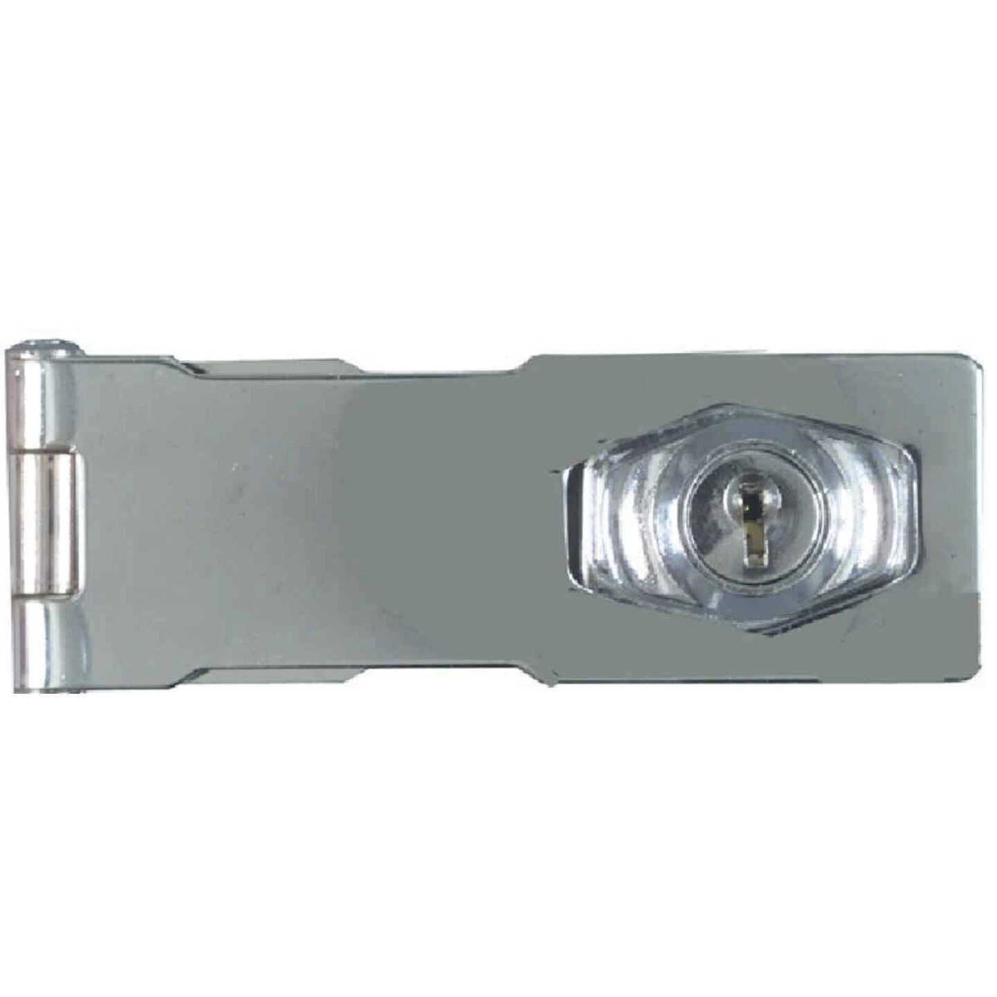Designed for securing and locking a wide variety of doors, cabinets, boxes, trunks, and more. For indoor or outdoor use. Self-contained lock eliminates need for padlock. All screws covered when locked. Heavy steel construction. Includes 2 keys and mounting hardware. Chrome-plated. 4-1/2 In. Keyed differently version uses key blank SL-1 or ILCO equivalent 1120D while the keyed alike version uses key blanks ILCO O1122R or 1098M equivalents.