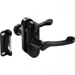 National Hardware Catalog Model No V1320. Interior locking mechanism provides for enhanced security. Includes spring loaded strike plate.